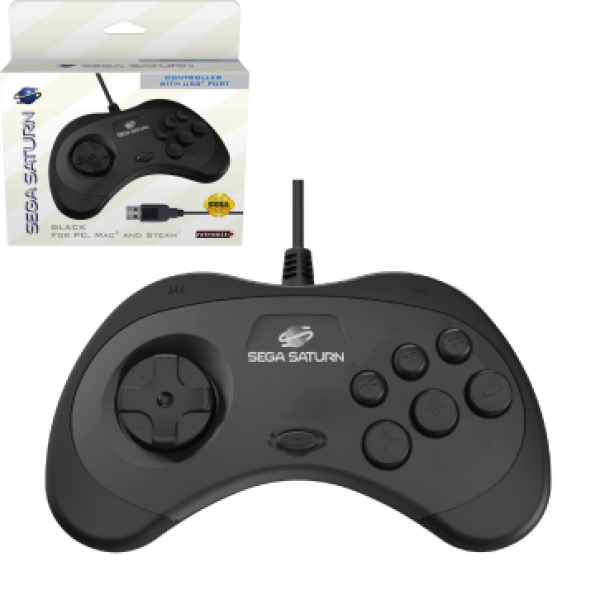 PC USB NS - Sega Saturn style controller (1st) 6b - RetroBit - Black - NEW